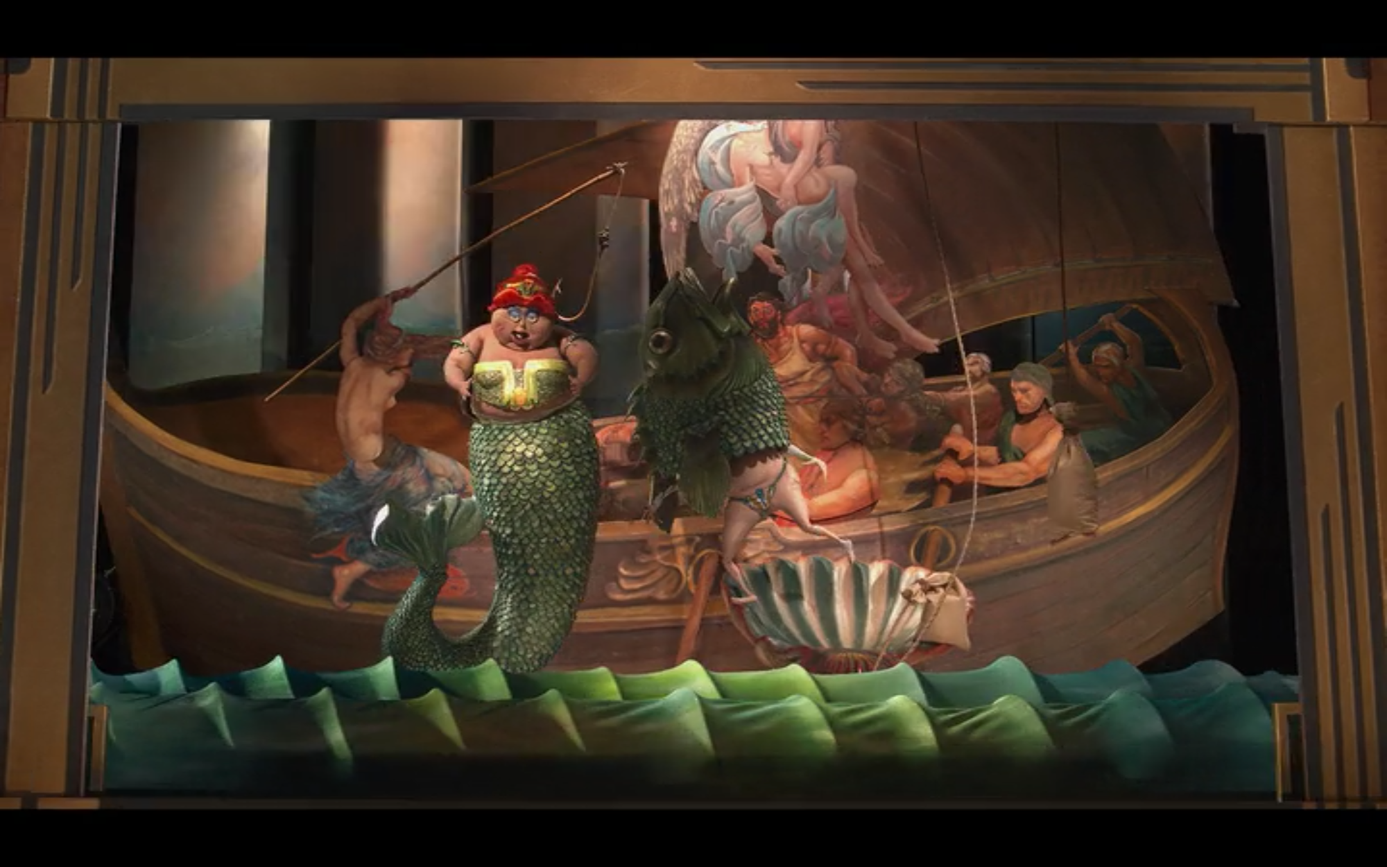 Can you point to specific frames and details to explain?